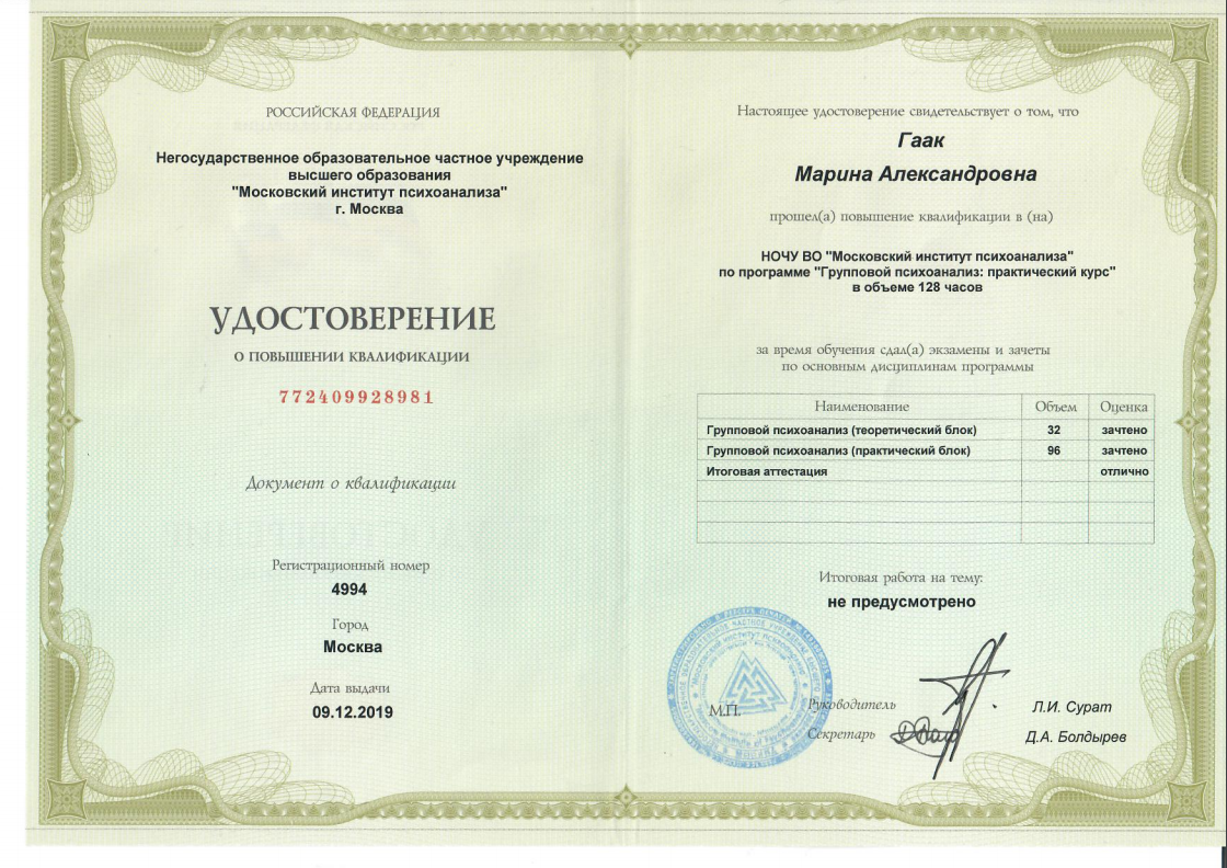 Московский Институт Психоанализа 2020 г. Групповой психоанализ и психодинамическая психотерапия