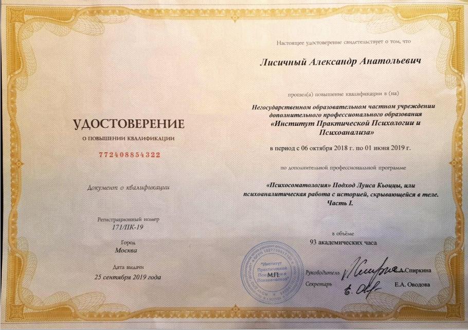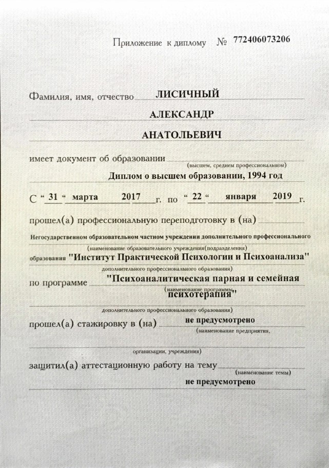 Индивидуальная консультация психолога/психотерапевта (Лисичный А.А.)