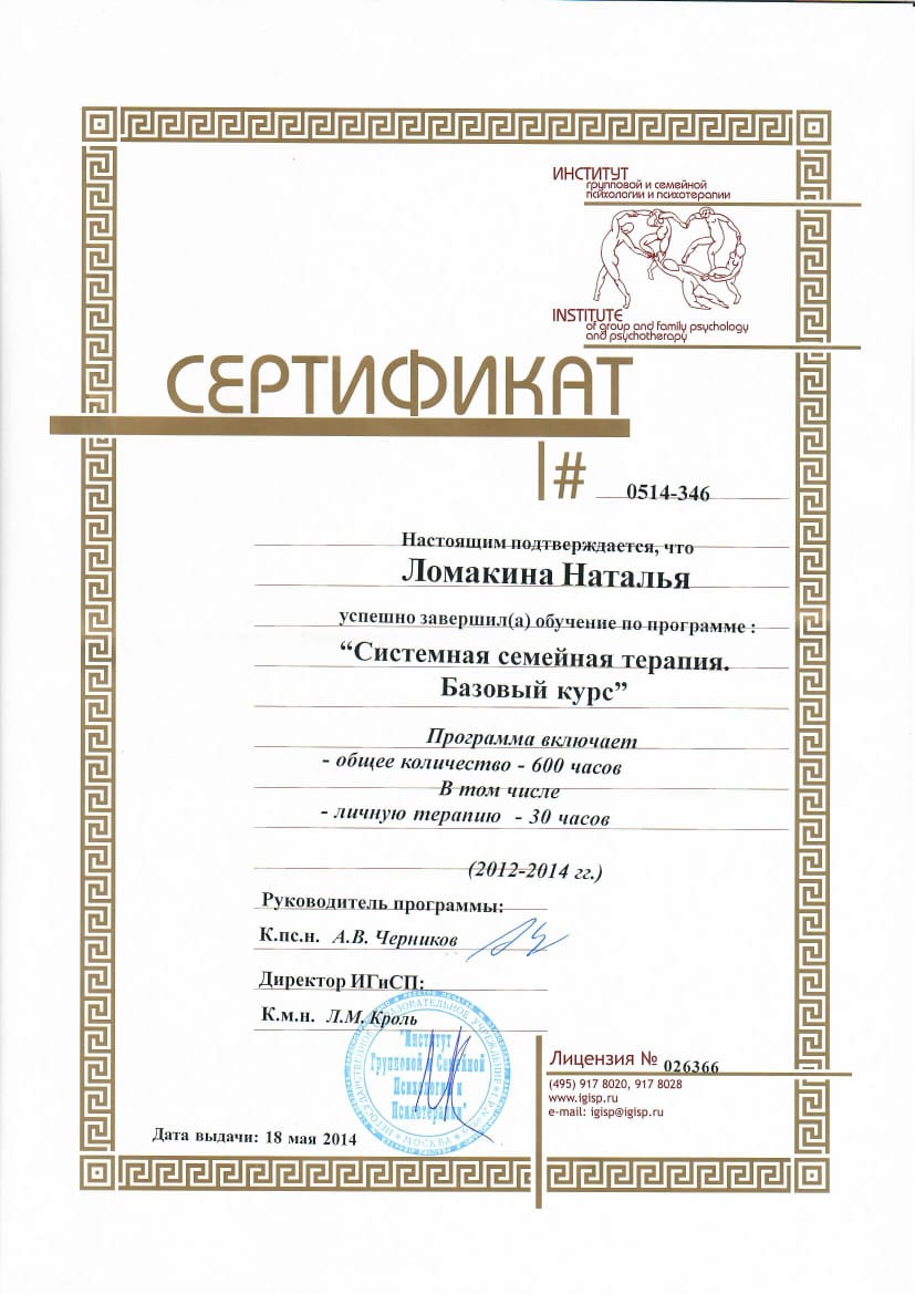 Институт Групповой и Семейной Психологии и Психотерапии; семейный психотерапевт