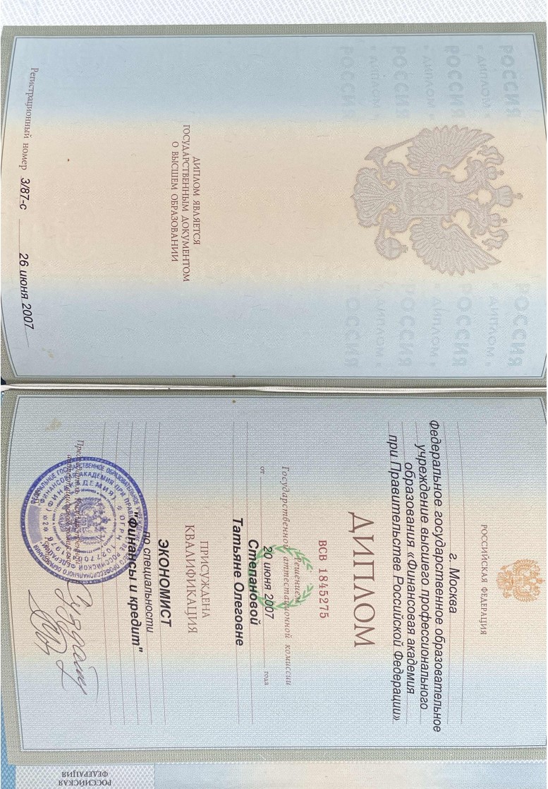 2001-2006 – Финансовая академия при Правительстве РФ, институт кредита – банковское дело